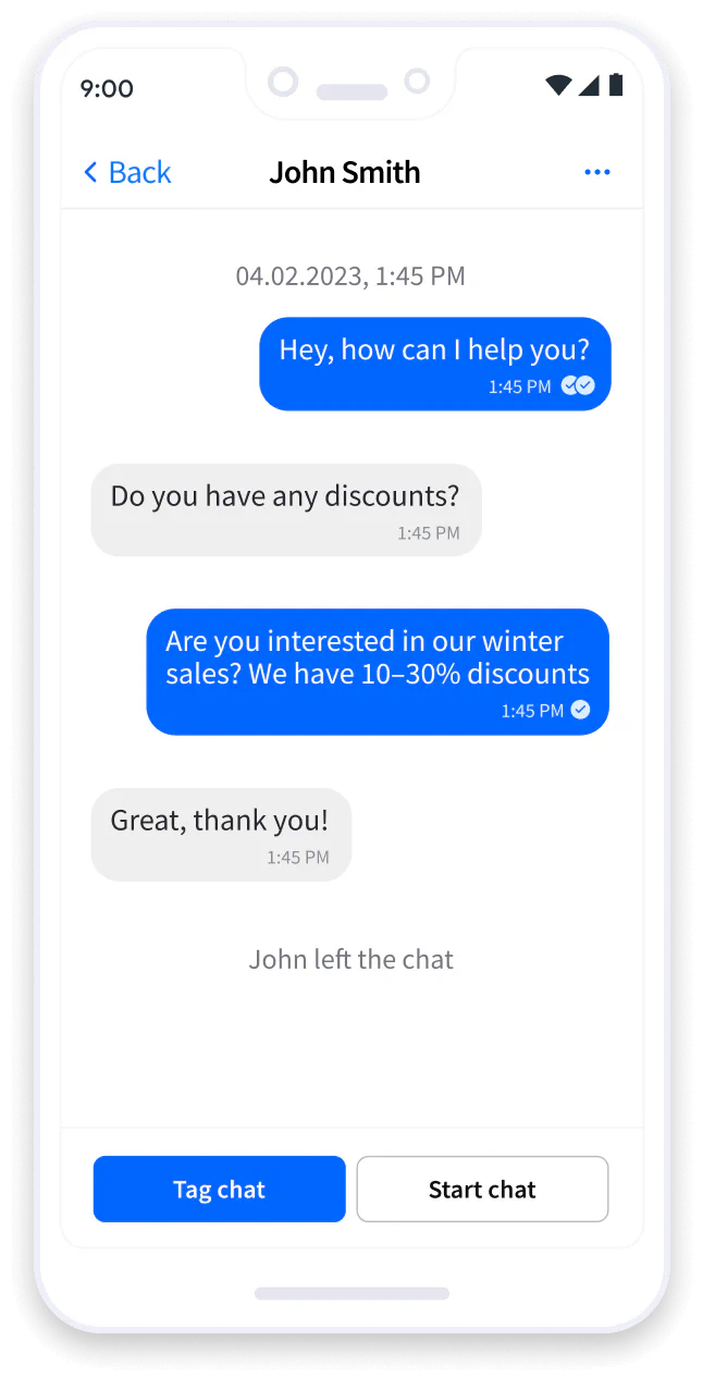 With LiveChat®, you’re not pinned to your desk. Switch to the Android app anytime and continue the chats that you’ve started on your desktop, using the same tools.